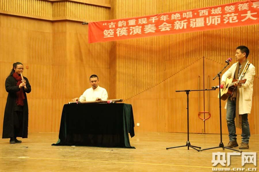 新疆且末箜篌演奏會走進新疆師范大學音樂廳(央廣網(wǎng)記者 張雷 攝)