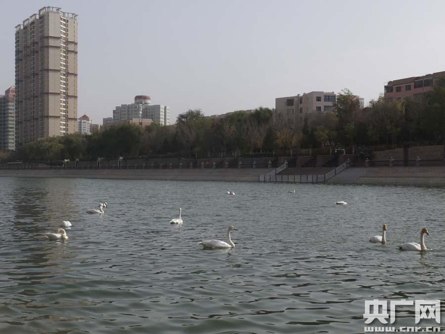 庫爾勒市孔雀河面上的天鵝