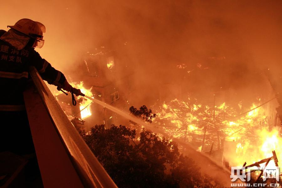 福州雨夜民房失火 消防官兵奮力撲救成功疏散300名群眾 (央廣網(wǎng)發(fā) 通訊員容肖 攝)