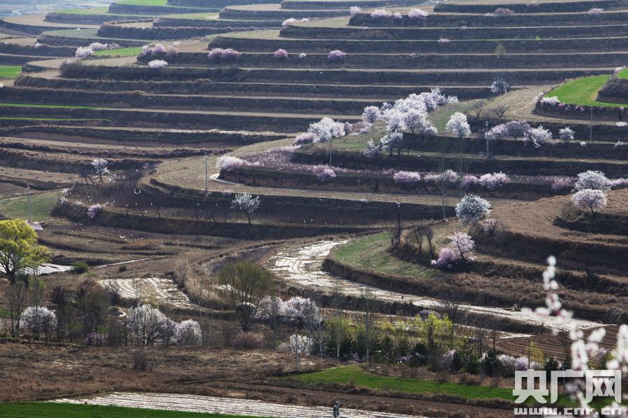 央廣網(wǎng)銀川4月17日消息 (記者許新霞 實(shí)習(xí)生徐升)四月的寧夏彭陽(yáng),春意正濃。隨處可見桃花、杏花爭(zhēng)奇斗艷,漫山遍野的粉色與層疊的綠色梯田形成一片片繡花的綠色“地毯”。位于彭陽(yáng)縣楊坪村的茹河瀑布雄偉壯觀,如一道道白練飛瀉而下。山花與瀑布的邂逅,讓彭陽(yáng)的春天變成了一幅天然的山水畫。(以上照片由徐升拍攝)