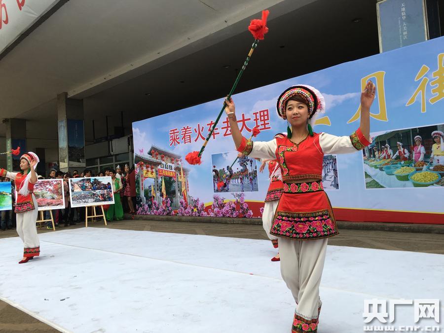 央廣網(wǎng)昆明4月19日消息(記者李健飛 李騰飛)為迎接“三月街民族節(jié)”,大理州和昆明鐵路局聯(lián)合在在昆明火車站及昆明—北京(Z161/2)、昆明—上海(K79/80)、昆明—大理(K9632/3、K9634/1、K9642/3、K9644/1)“大理號”旅游文化列車上開展“大理三月街民族節(jié)推薦會”和“列車上的三月街”主題活動。