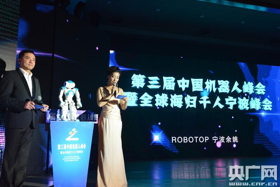 第三屆中國(guó)機(jī)器人峰會(huì)暨全球海歸千人寧波峰會(huì)以“人機(jī)融合,讓機(jī)器人更智能”為主題,旨在共商機(jī)器人產(chǎn)業(yè)發(fā)展大計(jì),共享機(jī)器人發(fā)展產(chǎn)業(yè)盛果。在6月12日晚舉行的機(jī)器人表演活動(dòng)中,機(jī)器人“姚姚”擔(dān)任主持人,和現(xiàn)場(chǎng)女主持相互調(diào)侃,展示了機(jī)器人的幽默和風(fēng)趣。而機(jī)器人“愛(ài)麗絲”和歌手共同放歌,機(jī)器人方隊(duì)表演舞蹈《小蘋(píng)果》則充分展示了機(jī)器人金屬外表下的柔情和動(dòng)感。