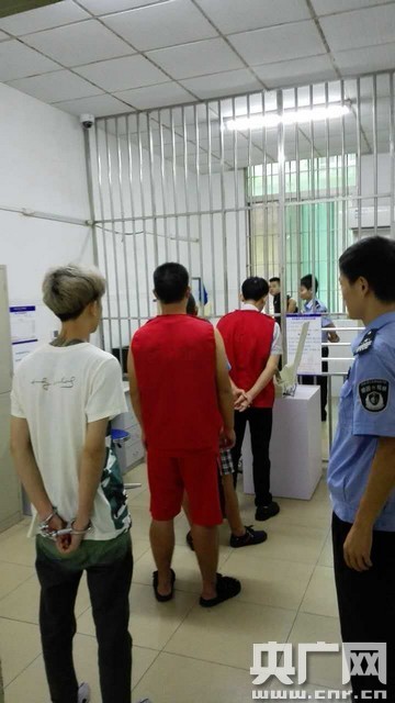 派出所民警押送嫌疑人(左一穿白色短袖為匡某)