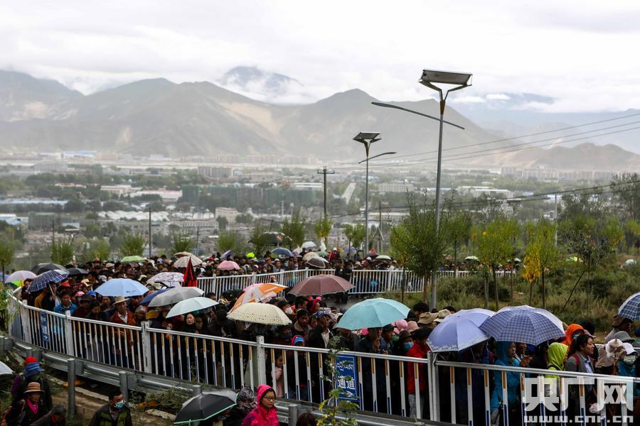 9月1日,拉薩哲蚌寺展佛,數(shù)十萬信徒前往朝拜。(央廣網(wǎng)記者 張壘 攝)