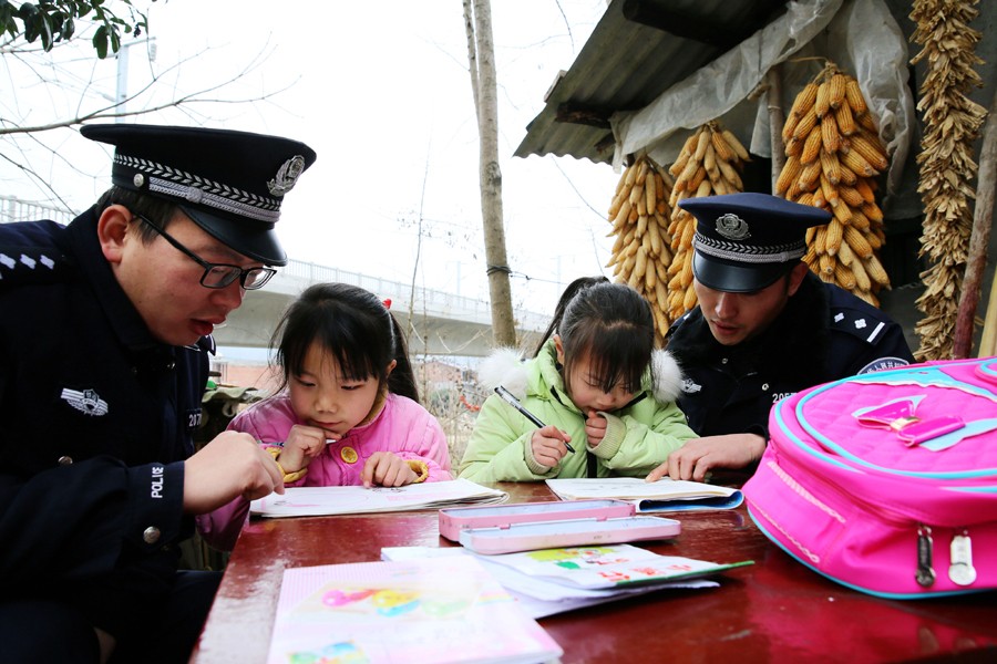 當(dāng)天,民警在和老人交談中得知他們的兒子、兒媳年底才能回家,為讓老人小孩過上一個溫馨的“暖”年,王鵬帶著民警為他們收拾房間,張貼對聯(lián)、“!弊,當(dāng)大紅的對聯(lián)貼上門楹,小慧姐妹兩拿著民警送來的“福”字,激動的在大門口拍照,要把照片發(fā)給爸爸、媽媽看。