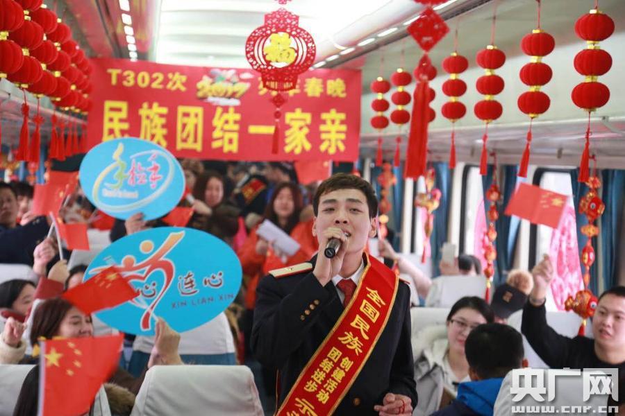 央廣網(wǎng)長春1月26日消息(記者 于中濤)26日,中國之聲《央廣新聞》和《直播中國》節(jié)目報(bào)道了長春開往烏魯木齊T302次列車舉辦“民族情唱響歡樂年”的列車春晚,該次列車邀請(qǐng)共建單位對(duì)口援疆學(xué)校長春希望高中的少數(shù)民族學(xué)生與列車乘務(wù)員共同為旅客獻(xiàn)上民族文化大餐。據(jù)了解,T302次列車是沈陽鐵路局東北進(jìn)入西北地區(qū)的首趟列車,這趟列車途經(jīng)吉林、遼寧、甘肅三個(gè)省份和內(nèi)蒙古、寧夏、新疆三個(gè)自治區(qū),47個(gè)少數(shù)民族地區(qū),全程運(yùn)行近56個(gè)小時(shí),600多名旅客要在列車上度過除夕。(央廣網(wǎng)記者 于中濤 攝) -
