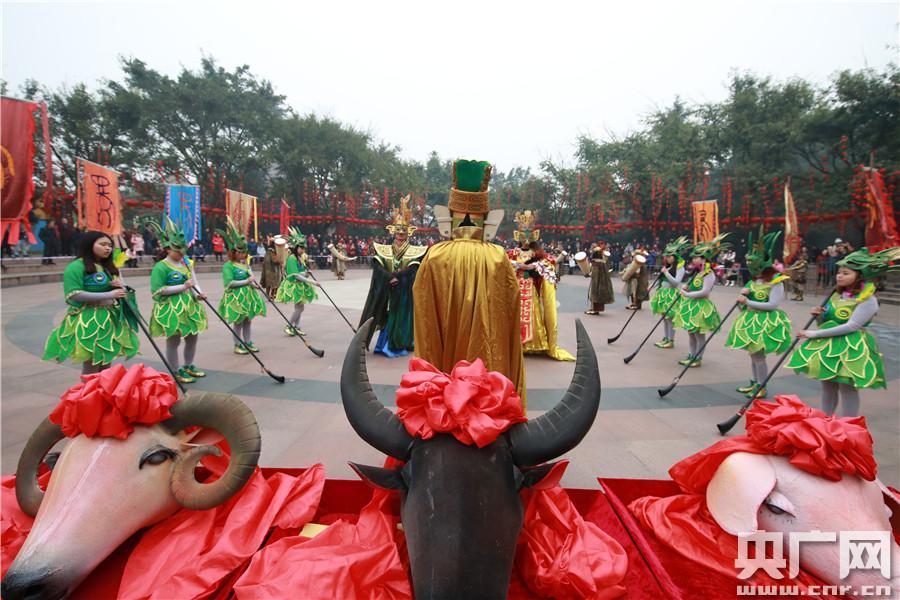 廣漢三星堆舉行新春大祭祀(央廣網(wǎng)記者 賈宜超 攝) 央廣網(wǎng)德陽1月28日消息(記者賈宜超)1月28日(正月初一)上午,2017年四川廣漢三星堆大祭祀迎春節(jié)活動在三星堆博物館舉行,祭祀隊伍仿古人儀典,通過場面宏大的祭祀巡游“重現(xiàn)”數(shù)千年前莊嚴壯麗的三星堆祭祀游行場景,帶領(lǐng)觀眾“重回古蜀”。 當(dāng)天的大祭祀活動中,上百人的祭祀隊伍從三星堆博物館正大門擊鼓鳴號、齊呼頌歌,面向西北(古蜀先民開創(chuàng)之地)虔誠行進。而在三星堆綜合館人與自然廣場前,祭司跨過火海,接受火的洗禮,感受自然之力;登上刀山,展現(xiàn)勇者精神,對話自然山川;青銅館前,祭司們將以歌舞為媒,向神靈祈運求福。 據(jù)悉,三星堆是古蜀宗教文化圣地和祭祀活動中心,祭祀文化是三星堆文化的核心。而三星堆博物館內(nèi)的回音祭壇已成為每年三星堆大祭祀舉辦地,今年正月初一(1月28日)至初三(1月30日),三星堆大祭祀的祭司隊伍們將在此分別舉行祭天、祭地、祭祖活動,上百人的祭祀隊伍將通過宣告(鼓三嚴)——就位——正儀(初獻禮(迎神舞)、亞獻禮、終獻禮)——送神(娛神舞、撤班、捧祝帛詣燎所、望燎)等步驟,完成祭祀祈福。 據(jù)了解,今年的大祭祀活動還推出“蜀天之光——天地年輪”福牌。福牌由一對代表天地的子福牌組成,祭拜完后,祭拜者可將手中的天福牌取下掛在祭祀臺納福區(qū),同時將地福牌帶走,祈求新的一年福運隨行。 據(jù)三星堆管委會主任朱家可介紹,今年的大祭祀還將首次與廣漢“保保節(jié)”結(jié)合,在正月十六(2月12日)“保保節(jié)”當(dāng)天為“寶寶”們舉辦特定的祭祀祈福和拜保保儀式!氨19(jié)”是廣漢本土的傳統(tǒng)節(jié)日,帶著強烈的地方特色和對子女健康成長的美好祝愿,是對未來的希望與祝福。 春節(jié)假期,除大祭祀外,三星堆博物館還將推出蜀錦蜀繡展、花藝、民俗、絕技等各類精彩活動,而大部分活動將從正月初一持續(xù)至正月十六。