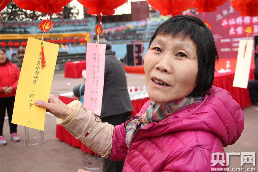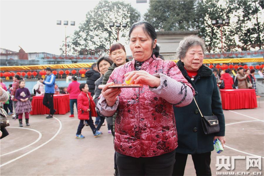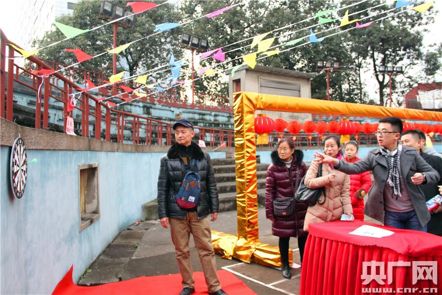 活動(dòng)現(xiàn)場(chǎng)(央廣網(wǎng)記者 賈宜超 攝) 央廣網(wǎng)成都2月11日消息(記者賈宜超)2月11日是元宵節(jié),成都市成華區(qū)二仙橋街道舉行慶元宵大型游園活動(dòng)。此次活動(dòng)吸引了附近居民踴躍參與,大家猜元宵燈謎、擲飛鏢、玩游戲,一起度過(guò)歡快的元宵節(jié)。 據(jù)悉,此次活動(dòng)由成華區(qū)二仙橋街道黨工委、辦事處主辦,二仙橋街道綜合文體活動(dòng)中心承辦。該項(xiàng)活動(dòng)已連續(xù)舉辦多年,旨在豐富群眾文化生活。 當(dāng)天,活動(dòng)吸引了老人、青年、小朋友等數(shù)百人參與到游戲中來(lái),大家猜元宵燈謎、擲飛鏢、投籃、擊球、套圈。在一帆風(fēng)順(一氣呵成)游戲中,參與者一口氣吹滅十支蠟燭,便能獲得獎(jiǎng)券一張。在歡樂(lè)夾元宵游戲中,臉盆里放了20個(gè)象征元宵的乒乓球,參與者各自從盆里夾元宵,夾20秒鐘,滿10個(gè)以上獲勝。在掌上明珠游戲中,參與者則將乒乓球平放在乒乓球拍上,沿著指定路線走至終點(diǎn),球未丟者可獲得獎(jiǎng)券一張。此外,游戲還包括了好運(yùn)連連、心靈手巧等,在心靈手巧游戲中,要求“嘴巴手指不一樣”,如主持人喊“6”,參賽者手指只要伸出與主持人喊出的數(shù)字不一樣就算獲勝。 據(jù)了解,此次慶元宵大型游園活動(dòng)在往年游戲活動(dòng)的基礎(chǔ)上,還增加了熱場(chǎng)節(jié)目《鼓舞》、舞蹈《張燈結(jié)彩》、《西班牙斗牛舞》、男聲獨(dú)唱《365個(gè)祝!、蒙古舞《拉薩的春天》女聲獨(dú)唱《美好時(shí)代》等精彩節(jié)目。活動(dòng)中,穿插和群眾的交流互動(dòng),一次次將歡樂(lè)氛圍推向高潮。