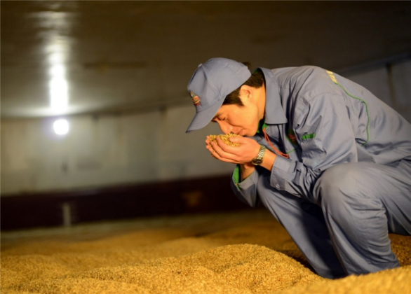 說(shuō)起自己對(duì)麥芽的了解,張師傅如數(shù)家珍!巴焙椭嗅t(yī)一樣,先仔細(xì)查看外表。大小、色澤均勻,有光澤,呈鮮艷的淡黃色為上乘;“聞”,麥芽香味濃厚,味道純凈才是啤酒原料的佳品;僅僅“望”、“聞”還不夠,必須要了解和判斷大麥的內(nèi)在質(zhì)量。這就需要專(zhuān)業(yè)人員“咬”和“捻”了。大麥“咬”起來(lái)粉狀粒多,表明內(nèi)含豐富的淀粉,同時(shí)也富含適中的蛋白質(zhì)、另外富含維生素、微量元素等,供酵母菌發(fā)酵時(shí)的營(yíng)養(yǎng)需要。由于大麥要在生產(chǎn)過(guò)程中轉(zhuǎn)變?yōu)槠【频臓I(yíng)養(yǎng)成分,因此其要便于主要成份的部分或全部降解,將其內(nèi)在的營(yíng)養(yǎng)價(jià)值充分釋放。好的大麥在用手指輕捻時(shí),麥芽疏松但是表皮不碎的才符合要求。如今,張?jiān)气櫮芨鶕?jù)發(fā)芽過(guò)程中的感官判定(芽葉長(zhǎng)度、手感水分等),預(yù)測(cè)麥芽生長(zhǎng)趨勢(shì),及時(shí)調(diào)整后續(xù)控制,保證成品麥芽理化指標(biāo)合格率100%;他保持24小時(shí)通訊暢通,對(duì)于突發(fā)性異常,第一時(shí)間找出最佳補(bǔ)救方案,將異常影響降至最低。