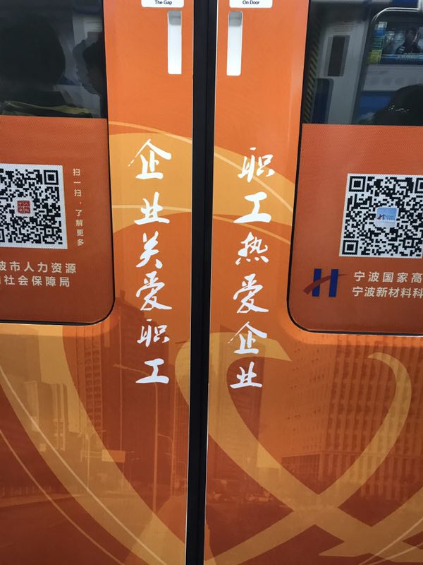 寧波愛信諾航天信息有限公司的職工李鳳珠告訴記者,看到地鐵上有工作企業(yè)的信息和自己的照片,感到非常激動(dòng),也為自己能在這里工作而感到自豪。該公司公會(huì)主席表示,在該趟“雙愛”列車上,他們選擇了員工的工作照、生活照來替代企業(yè)的宣傳信息,通過一張張有愛的照片,傳達(dá)了企業(yè)“雙愛促和諧”的氛圍。