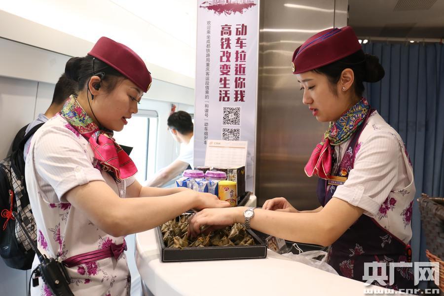 在當(dāng)天的活動中,重慶客運段G8510次工作人員向旅客介紹了端午文化的起源、背景、習(xí)俗等,現(xiàn)場氣氛活躍;顒又辛熊嚬ぷ魅藛T還將糯米、粽葉分發(fā)給旅客。在列車工作人員的組織下,萍水相逢的人們一起玩游戲,小小的車廂里充滿了歡樂的節(jié)日氣氛。