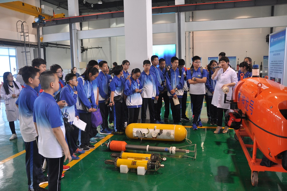 8日下午,來自青島市多所海洋特色教育學校的80余名中學生參觀了海洋國家實驗室綜合展示中心、海洋高端裝備聯(lián)合實驗室,觀看了國內(nèi)先進的水下機器人、AUV、ROV等模型,并體驗了神奇的VR影片,充分領略了海洋科學的魅力。