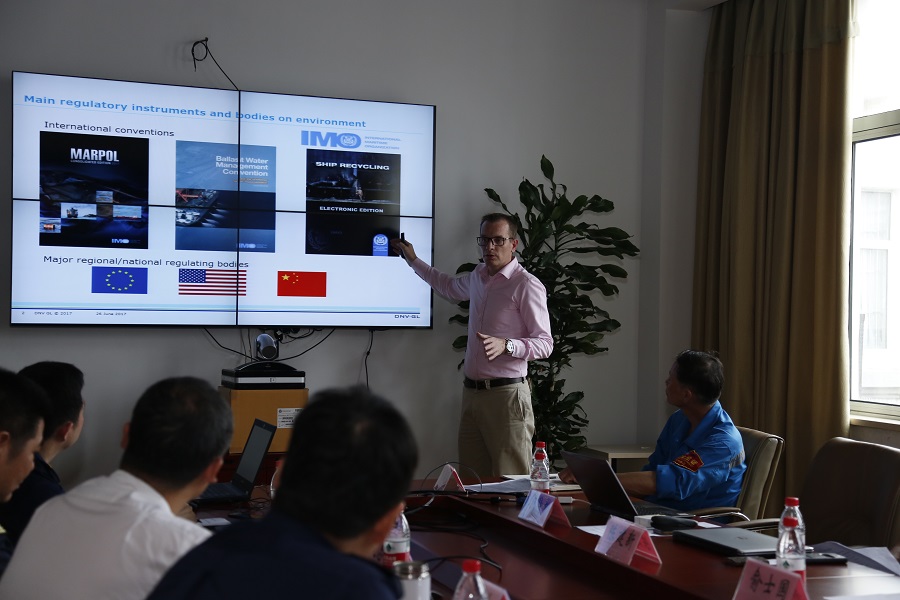 共商會上,DNV-GL船級社安全部經理、德國籍專家介紹了歐洲防治船舶水域污染和氮氧化物、硫氧化物排放控制方面的管理經驗,CCS上海分社崇明船檢處指導驗船師以及中海長興船廠、江南長興重工等單位的專家代表分別結合各自單位特點,就船廠、船舶防污染工作進行了經驗交流。在互動環(huán)節(jié),各方還重點就船廠修船過程中的鐵砂、油漆等污染物控制、推動技術標準建立以及在建、試航船舶防污染措施等方面的問題建言獻策,展開熱烈討論,深入交換了意見。