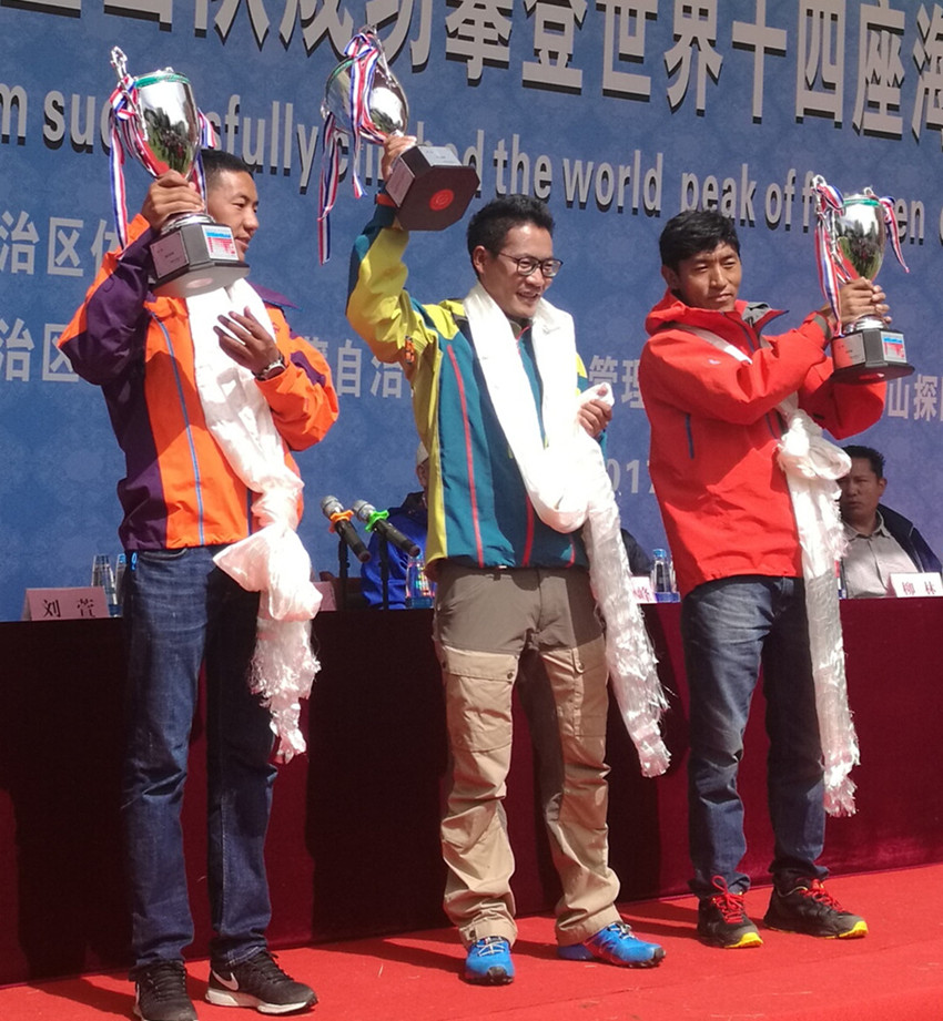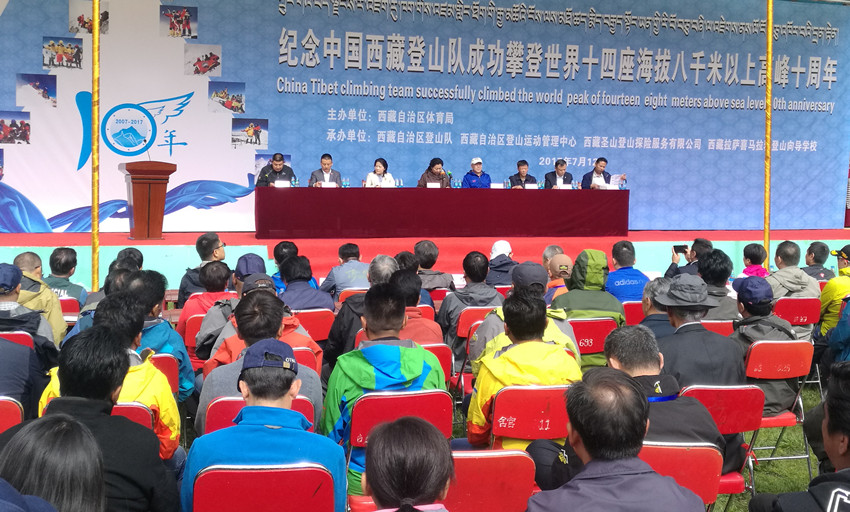 央廣網(wǎng)拉薩7月12日消息(記者普布次仁)今日上午,西藏登山隊的登山英雄和登山戶外運動愛好者齊聚登山學(xué)校隆重紀(jì)念中國西藏登山隊成功攀登世界14座海拔8000米以上高峰10周年,活動現(xiàn)場為登山英雄們頒發(fā)了紀(jì)念獎杯。