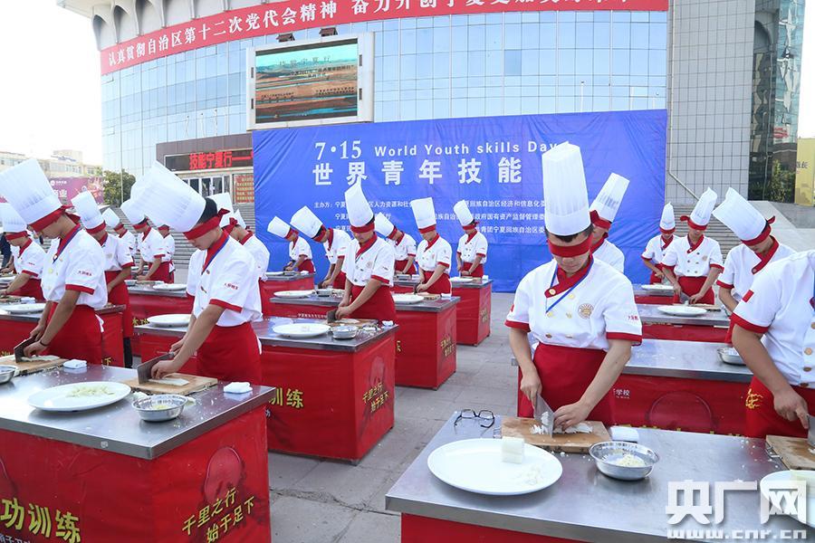 技能比賽(央廣網(wǎng)記者 廉軍 攝) 央廣網(wǎng)銀川7月15日消息(記者廉軍) 今天是“世界青年技能日”,寧夏人社、經(jīng)信、國資、工會、共青團(tuán)、商務(wù)等部門在銀川光明廣場組織開展了以“技能成就夢想”為主題的“技能中國行”等宣傳活動。 2014年聯(lián)合國大會將每年的7月15日確定為“世界青年技能日”,李克強總理專門對世界青年技能日做出重要批示,要求把培養(yǎng)造就青年技能人才隊伍擺到促進(jìn)大眾創(chuàng)業(yè)萬眾創(chuàng)新、推動經(jīng)濟(jì)社會發(fā)展的重要位置,作為促進(jìn)就業(yè)結(jié)構(gòu)優(yōu)化、實現(xiàn)經(jīng)濟(jì)轉(zhuǎn)型升級的重點工作來抓。希望培育和弘揚精益求精的工匠精神,使工匠精神成為技能人才培養(yǎng)的重要標(biāo)準(zhǔn),使廣大青年成為具有工匠水平的技能人才。 當(dāng)日光明廣場舉辦他技能技藝現(xiàn)場展示和交流,年青的廚師們進(jìn)行了廚藝表演和比賽,還有技能培訓(xùn)、茶藝、實用技術(shù)等展示。寧夏人社廳的相關(guān)負(fù)責(zé)人表示,將宣傳優(yōu)秀技能人才事跡和經(jīng)驗,強化社會勞動價值和社會貢獻(xiàn),以正確價值導(dǎo)向,引導(dǎo) 青年人把“技能成就夢想”作為人生追求,讓全社會逐漸形成尊重勞動、崇尚技能的風(fēng)氣。 -