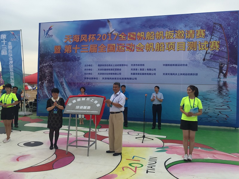 央廣網(wǎng)天津7月26日消息(記者夏震宇 蘇平 通訊員劉鵬 薛力強(qiáng))今天下午,由國家體育總局水上運(yùn)動管理中心、天津市體育局、中國帆船帆板運(yùn)動協(xié)會主辦,天津東疆保稅港區(qū)管委會、天津港(集團(tuán))有限公司承辦,天津港文化傳媒有限公司、東疆灣景區(qū)服務(wù)有限公司、天津天海風(fēng)水上休閑運(yùn)動俱樂部有限公司協(xié)辦的“天海風(fēng)”杯2017全國帆船帆板邀請賽暨第十三屆全國運(yùn)動會帆船項(xiàng)目測試賽在美麗的天津東疆灣景區(qū)開賽,本次全國邀請賽暨測試賽的場地也將是全運(yùn)會帆船帆板項(xiàng)目的正式比賽場地。國家體育總局水上運(yùn)動管理中心副主任張小冬、天津市體育局副局長李桂峰、天津港集團(tuán)公司黨委副書記王存杰、天津東疆保稅港區(qū)管委會副主任宮麗艷、天津市體育局副局長張欣等出席開幕式,