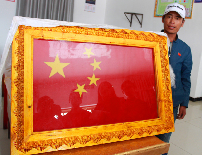 “就是有了國家的好政策,我這個合作社才做的起來。滿懷著對我們國家的熱愛和感恩,我有了做五星紅旗的想法!睘榱烁玫耐瓿芍谱,并沒有什么文化的次仁頓珠認(rèn)真查閱了許多的資料進(jìn)行學(xué)習(xí),并在了解相關(guān)標(biāo)準(zhǔn)和制作要求后按照比例精心制作了這面旗幟。