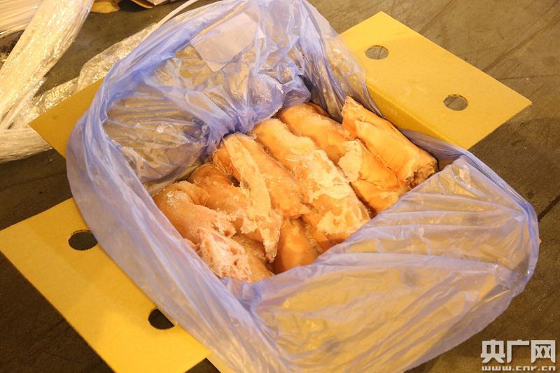 在現(xiàn)場(chǎng),海警官兵查扣非法入境的2500噸級(jí)外籍走私船1艘,抓獲犯罪嫌疑人12人,其中緬甸籍船員9名;現(xiàn)場(chǎng)查扣40英尺集裝箱50只,其中冷凍箱23只。其中,在查獲的500余噸豬、牛內(nèi)臟、鴨掌、雞爪等凍品中,經(jīng)確認(rèn)有300余噸來自疫區(qū)。這些凍品在被偷運(yùn)入境的過程中,輾轉(zhuǎn)經(jīng)過境外多個(gè)國(guó)家與地區(qū),其中部分凍品在被海關(guān)查獲時(shí),已經(jīng)解凍并淌出血水,散發(fā)出陣陣腐臭。在經(jīng)有關(guān)部門鑒定確認(rèn)后,將對(duì)該批凍品進(jìn)行銷毀處理。此外,查獲的走私物品中還有部分廢舊電腦配件、廢舊輪胎等屬于國(guó)家禁止進(jìn)口的貨物,就是俗稱的“洋垃圾”,也將依法予以妥善分類處理。