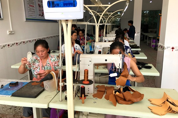 在青山橋皮鞋制作培訓學校,幾十名學員正在技術工人的指導下進行實操訓練培訓。青山橋鎮(zhèn)副鎮(zhèn)長譚鐵權表示,培訓學校自今年開辦以來,已為園區(qū)的皮鞋制造企業(yè)輸送了不少技術工人。“培訓學校有政府補貼,學員們都是免費學習,期間每天還能獲得一定的補助!鼻嗌綐蜴(zhèn)黨委書記、青山皮鞋工業(yè)園管委會主任胡衛(wèi)說,“培訓大約2個月后就能上崗,解決了很多當?shù)鼐用竦木蜆I(yè)問題。”