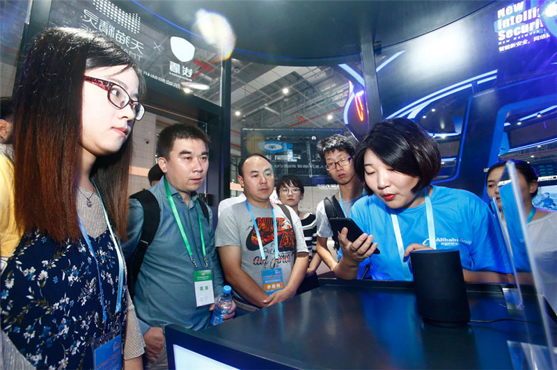 阿里巴巴安全部工作人員正在演示如何與“天貓精靈”語(yǔ)音交流
