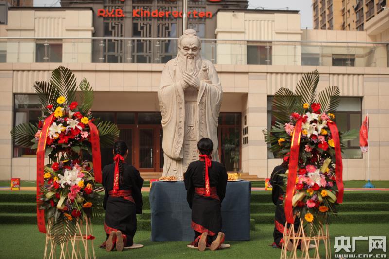 央廣網(wǎng)濟(jì)南9月29日消息(記者 劉?┤寮矣小安粚W(xué)禮、無以立”的思想,在先師孔子誕辰之際,位于濟(jì)南市高新區(qū)鳳棲第的紅黃藍(lán)幼兒園舉辦祭孔儀式,通過這一形式,在幼兒心中種下“尊師 孝親 明理 崇文”的種子。