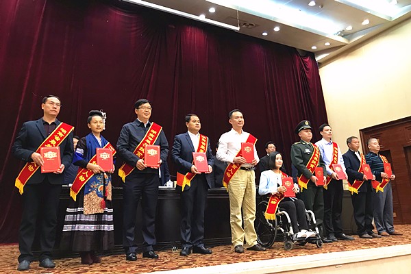 會上,發(fā)揮高校優(yōu)勢扎實(shí)推動瑤族鄉(xiāng)扶貧工作的湖南大學(xué)研究生院綜合辦主任李飛龍、身殘志堅(jiān)的90后苗鄉(xiāng)姑娘楊淑亭、堅(jiān)守扶貧崗位16年的株洲市扶貧辦副主任譚帥、踐行軍隊(duì)宗旨讓窮山僻壤換新顏的湖南省軍區(qū)駐桑植縣新陽村扶貧工作隊(duì)隊(duì)長吳正平等4名最美扶貧人物代表上臺發(fā)言。