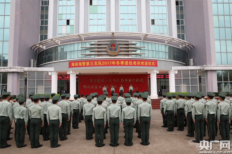 央廣網(wǎng)海口12月1日消息(記者朱永 通訊員 李琳 張波 攝影 張波)送戰(zhàn)友,踏征程,又到一年退伍時。12月1日,海南海警第三支隊隆重舉行2017年度歡送冬季退伍老兵儀式,退伍老兵告別了曾經(jīng)戰(zhàn)斗過的火熱警營,踏上了新的人生旅程。