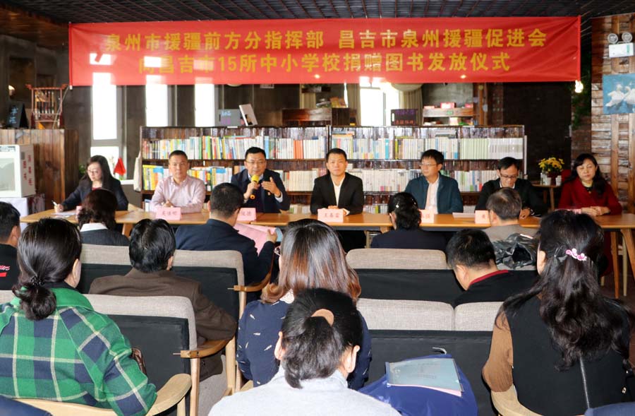 今年8月,昌吉市泉州援疆促進(jìn)會成立后,為推動智力援疆更加扎實(shí)深入,創(chuàng)新援疆新思路,多方努力和呼吁文化屆的同仁,積極爭取同行們的重視,得到了北京蔚然公益基金會、國家圖書館、北京市圖書館、上海圖書館、泉州市圖書館及多家合作出版社的支持。8月底,確定了每所學(xué)校5萬元的正版圖書,援疆促進(jìn)會給予資金上的大力支持,最終以花費(fèi)最少的代價(jià)獲得75萬元的圖書,圖書于11月底運(yùn)抵昌吉市。
