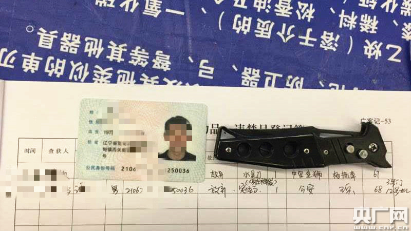 無獨有偶,24日上午9:50時許,一位中年男子過安檢時有意向右側(cè)身,一只手緊緊地貼在左邊的褲子口袋上,另一只手將手檢員的掃描儀推開。這一幕恰好被崗位民警發(fā)現(xiàn),經(jīng)檢查,結(jié)果查獲一把管制刀具。