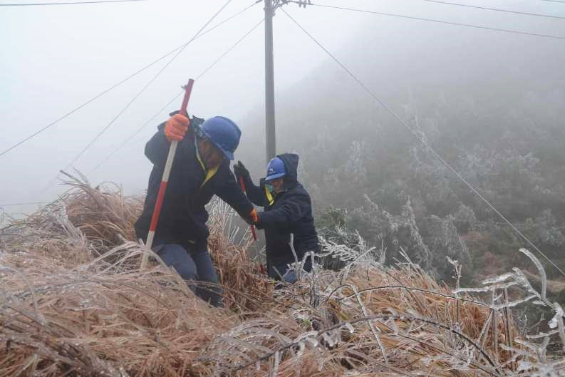 1月28日早上,寒潮持續(xù),南方電網廣東韶關城區(qū)供電局技術人員正在防冰特巡。