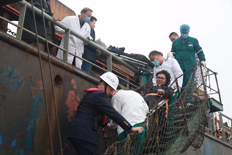 15時(shí)35分,外輪“贏洋”到達(dá)指定錨地拋錨。15時(shí)45分,3名緬甸籍船員和2名中國籍船員在海巡09003船接送下成功救助上岸,隨后在口岸聯(lián)檢部門快速辦理完入境手續(xù)后由救護(hù)車送往醫(yī)院救治。經(jīng)初步了解,傷員分別是頭部、四肢、腹部等部位受損,其中1人說話困難,2人骨折,2人手折。此次救援共出動(dòng)海事人員7人,船艇1艘次。據(jù)悉,該船擬由臺(tái)灣駛往越南裝貨,事故原因是5員船員在甲板面作業(yè)時(shí)被固定鋼板突然脫落砸傷。