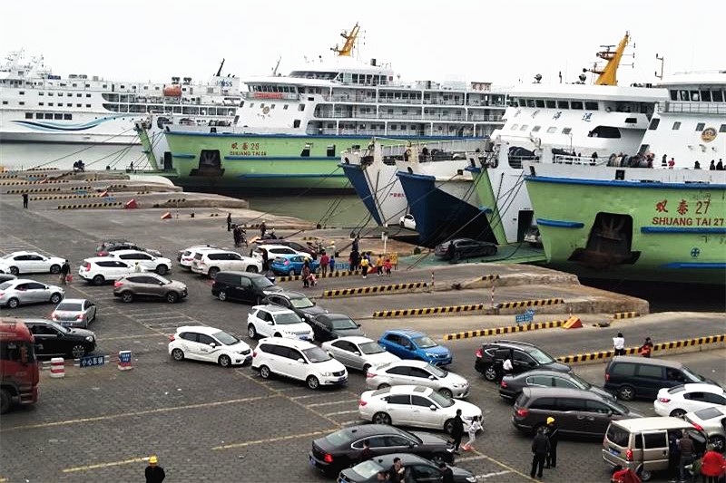 繁忙的瓊州海峽春運現(xiàn)場