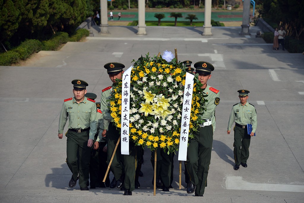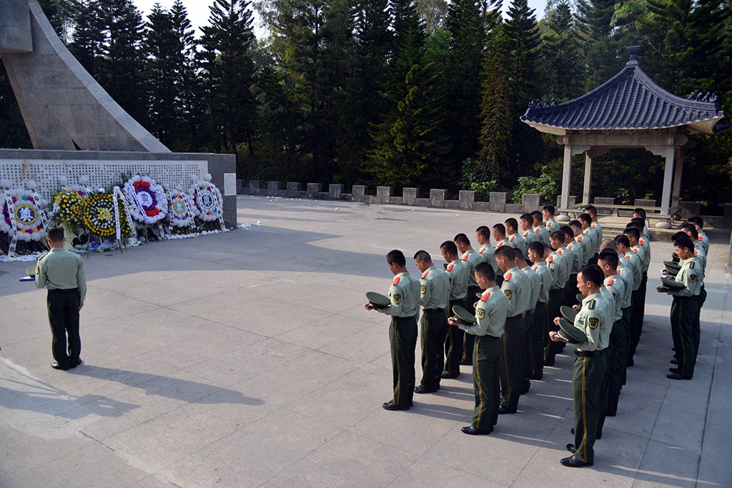 在悼念現(xiàn)場,官兵們?yōu)楦锩沂烤传I(xiàn)了花圈,全體官兵肅立、脫帽,向革命烈士默哀,表達(dá)對(duì)革命英烈的敬仰和哀思之情。默哀結(jié)束后,全體官兵面向黨旗莊嚴(yán)宣誓,矢志繼承革命先烈光榮傳統(tǒng),發(fā)揚(yáng)愛國主義精神,踐行當(dāng)代革命軍人核心價(jià)值觀,堅(jiān)決維護(hù)祖國海洋權(quán)益,全力以赴完成好新形勢(shì)下國家賦予海警部隊(duì)的各項(xiàng)工作任務(wù)。隨后,嶺南師范學(xué)院“愛我湛江”歷史知識(shí)服務(wù)隊(duì)的學(xué)生們與官兵一同追憶了革命先烈為建立新中國拋頭顱、灑熱血的英勇事跡。