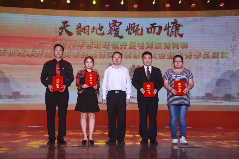 央廣網(wǎng)北京4月28日消息(記者劉天思、通訊員馬鳳霞)4月27日,由北京市海淀區(qū)文化委員會與西北旺鎮(zhèn)政府主辦的“書香海岳新時代文化揚帆中關(guān)村”“天翻地覆慨而慷”2018年西北旺鎮(zhèn)開展毛澤東詩詞和慶祝改革開放40周年經(jīng)典詩詞誦讀頒獎大會暨優(yōu)秀作品展演在航天城禮堂舉行。著名朗誦表演藝術(shù)家曹燦及西北旺鎮(zhèn)各村、社區(qū)朗誦愛好者1200余人一同觀看了演出。