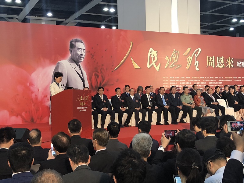 央廣網(wǎng)香港5月8日消息(記者周偉琪)5月8日下午,“人民總理周恩來——紀(jì)念周恩來誕辰120周年大型展覽”在香港會(huì)展中心隆重舉行。香港特別行政區(qū)行政長(zhǎng)官林鄭月娥,中央政府駐港聯(lián)絡(luò)辦主任王志民,全國(guó)政協(xié)港澳臺(tái)僑委員會(huì)副主任裘援平,外交部駐港特派員公署特派員謝鋒,中國(guó)人民解放軍駐香港部隊(duì)司令員譚本宏,中央政府駐港聯(lián)絡(luò)辦副主任楊健,組委會(huì)榮譽(yù)主席、第十屆全國(guó)政協(xié)委員、周恩來侄女周秉德,組委會(huì)主席、全國(guó)政協(xié)委員、周恩來侄女周秉建,香港特區(qū)立法會(huì)主席梁君彥,全國(guó)人民代表大會(huì)常務(wù)委員會(huì)委員譚耀宗,組委會(huì)主席、全國(guó)政協(xié)常委、香港僑界社團(tuán)聯(lián)會(huì)會(huì)長(zhǎng)余國(guó)春等出席并擔(dān)任主禮嘉賓。開幕禮上,林鄭月娥、王志民、謝鋒、余國(guó)春、周秉德先后致辭,表達(dá)了對(duì)周恩來總理的崇敬和懷念之情,講述了周總理與香港的故事。