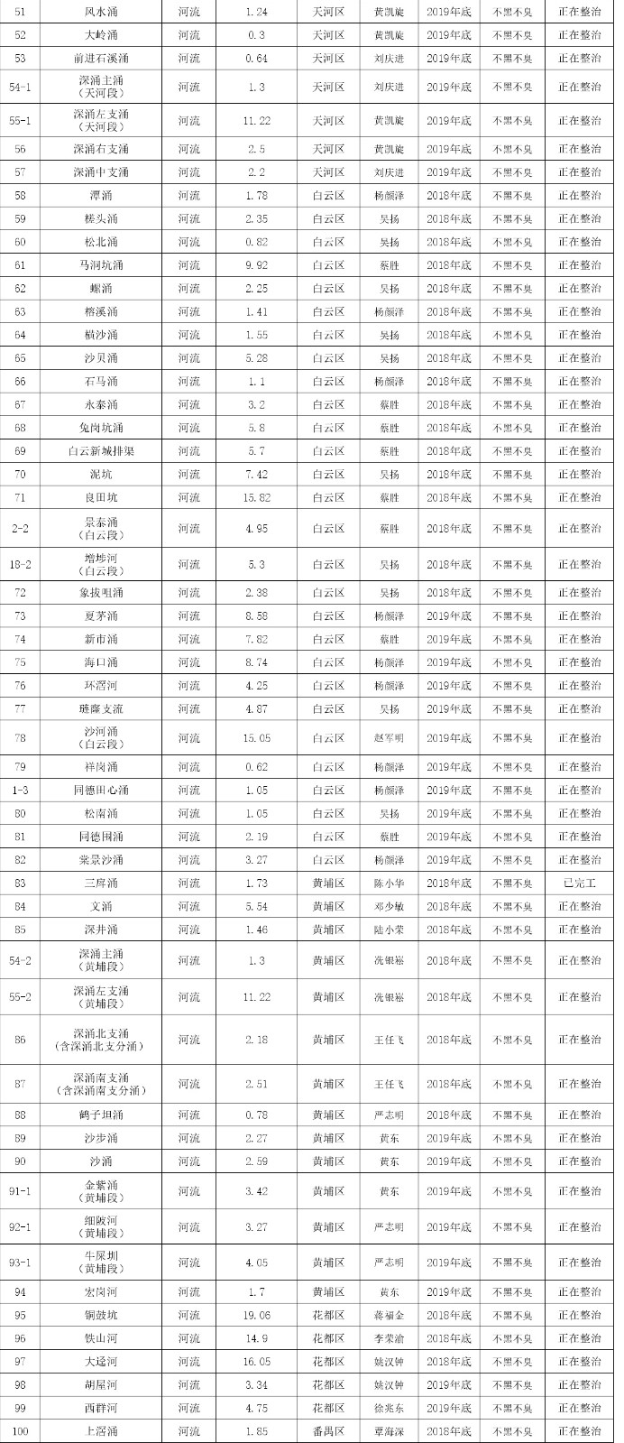 根據(jù)《廣州市黑臭水體整治工作意見》和《廣州市治水三年行動計劃(2017-2019年)》,共有187條黑臭河涌被納入整治計劃。其中,列入國家環(huán)保部和住建部監(jiān)管平臺的35條黑臭河涌已于2017年底前完成整治任務(wù),經(jīng)第三方評估已達到“初見成效”目標(biāo)。