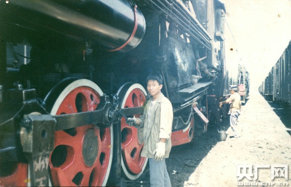 孫西寧在“前進(jìn)”型蒸汽機(jī)車旁