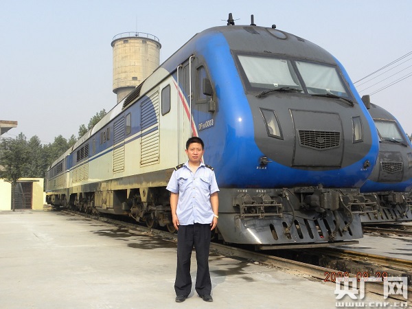 孫西寧在“東風(fēng)”11G“跨越”型重聯(lián)內(nèi)燃機(jī)車旁