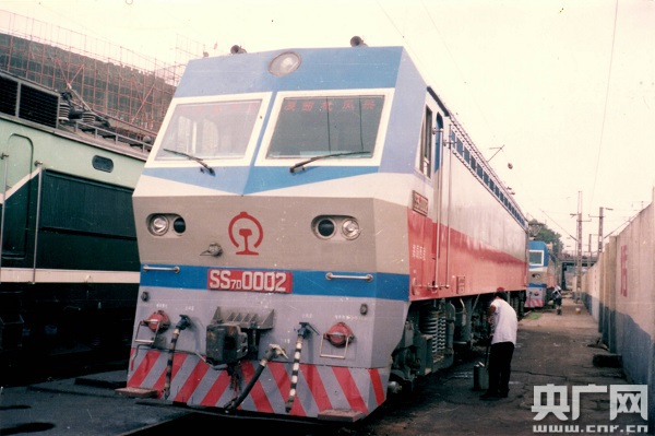 孫西寧在擦洗“韶山”7D型電力機(jī)車