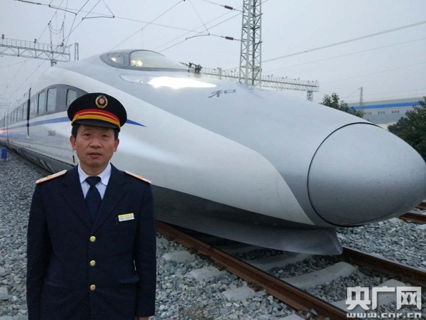 孫西寧站在“和諧”號(hào)CRH380A型動(dòng)車組旁合影