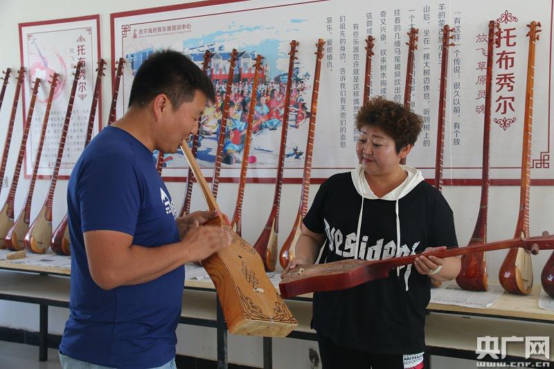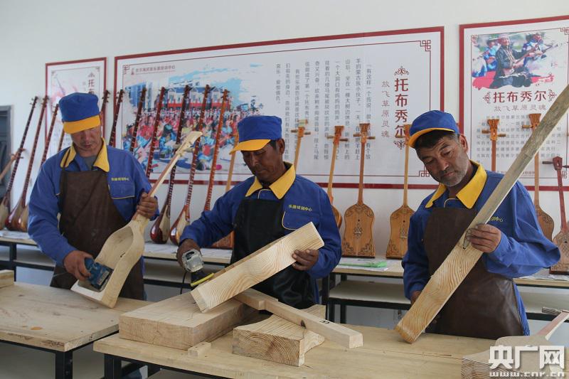 在民族樂器制作基地,工匠正帶著幾名學(xué)徒趕制一批托布秀爾樂器。畫圖、挖槽、打磨、拋光……每道工藝都一絲不茍。培訓(xùn)中心負(fù)責(zé)人山其米格介紹,除了師傅帶徒弟這種模式,中心還舉辦各類培訓(xùn),近期就為當(dāng)?shù)?0名低保戶、貧困戶做了免費(fèi)培訓(xùn)。
