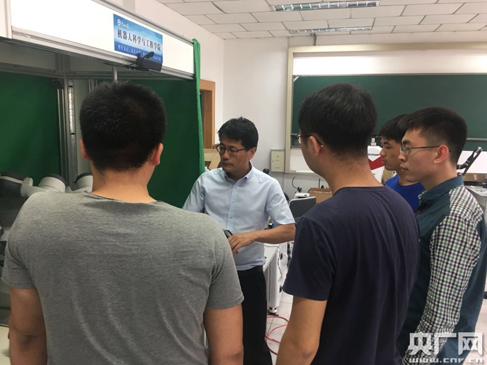 王斐教授正在和學(xué)生們分析交流研發(fā)問題