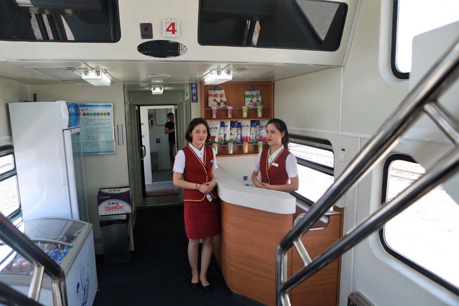 “這是新疆鐵路部門對‘暢覽南疆’旅游列車進(jìn)行整體改造完成后首次亮相!敝袊F路烏魯木齊局集團(tuán)有限公司經(jīng)營開發(fā)處相關(guān)負(fù)責(zé)人介紹,此次對列車“美顏”升級后,列車有一節(jié)軟臥、四節(jié)硬臥,掛有餐吧車、餐車、多功能車、淋浴車,這是新疆鐵路打造“坐著火車游新疆”品牌推出的精品旅游列車。