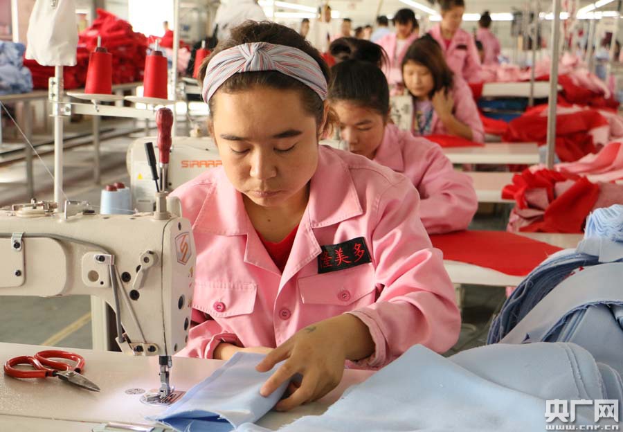 村民們在庫車隆美多服飾有限公司實現(xiàn)了就業(yè),趕制訂單服飾。