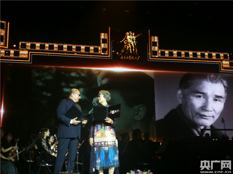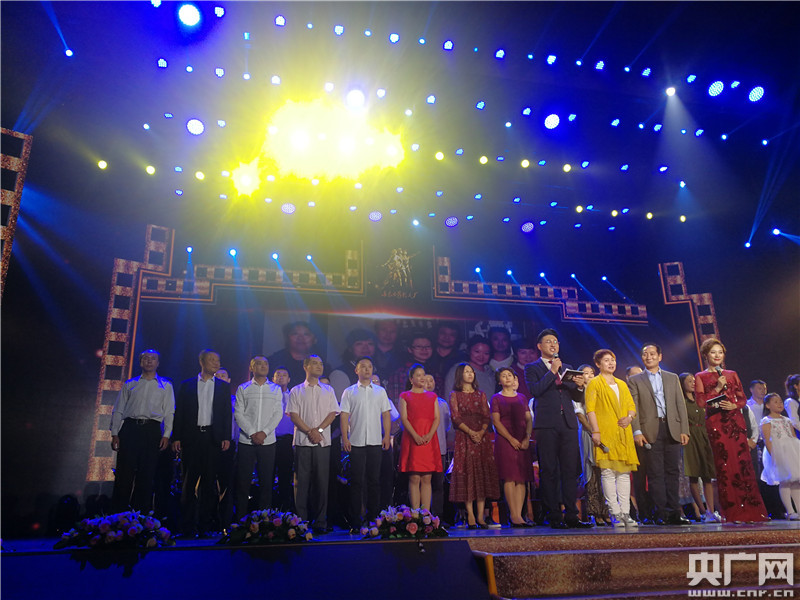 一批在長(zhǎng)影工作過(guò)的老藝術(shù)家田華、陳學(xué)潔、王浙濱、宋曉英、朱德承、肖桂云、李前寬在“長(zhǎng)影之夜”的舞臺(tái)上分享自己和長(zhǎng)影的故事。(央廣網(wǎng)記者 劉源源 攝)