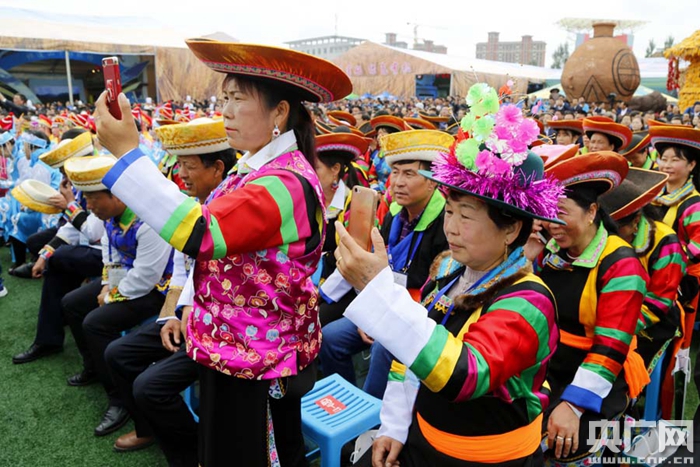盛裝參加開幕式的青海土族農(nóng)民(央廣網(wǎng)記者 張雷 攝)