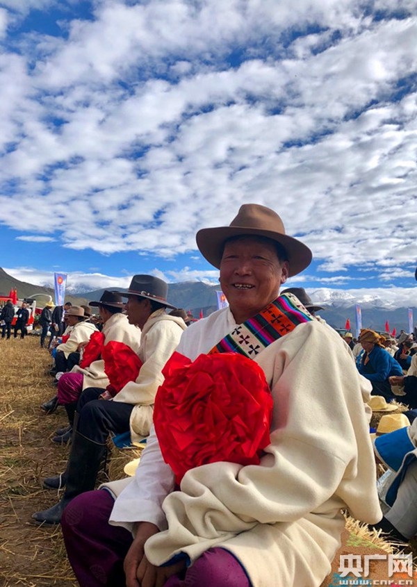 參加西藏首屆中國(guó)農(nóng)民豐收節(jié)慶;顒(dòng)的藏族農(nóng)民(央廣網(wǎng)記者 德慶白珍 攝)