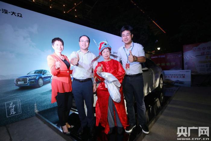 廈門市民張阿姨身穿“狀元服”,在小轎車獎品前合影(央廣網(wǎng)發(fā) 主辦方供圖)