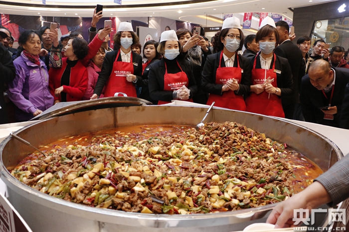 巨大盛器中的新疆本土名吃大盤雞(央廣網(wǎng)見(jiàn)習(xí)記者 韓雪瑩 攝)