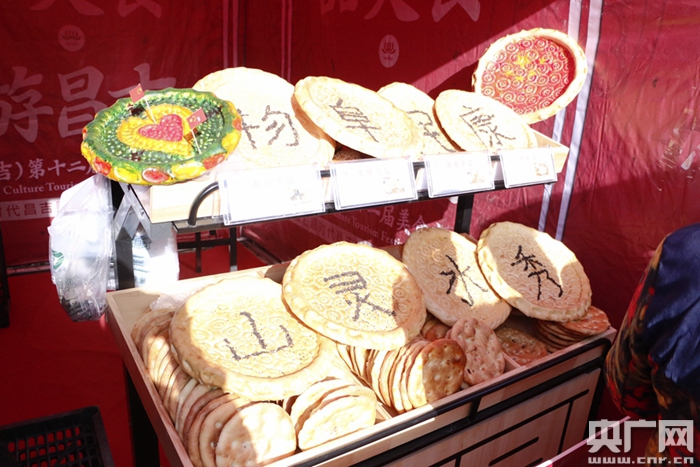 阜康市美食展區(qū)的烤馕別具一格(央廣網(wǎng)見(jiàn)習(xí)記者 韓雪瑩 攝)